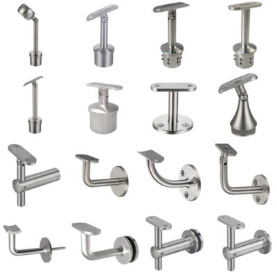 Зажимы и держатели для стекла из нержавеющей стали – прочные крепления для лестничных перил и стеклянных ограждений, изготовленные из AISI 304 и 316.