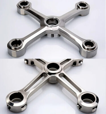 Фитинги-пауки из нержавеющей стали: марки 304, 316. Применяются в стеклянных фасадах для крепления стекла со структурными элементами. Отличаются высокой коррозионной стойкостью и прочностью.